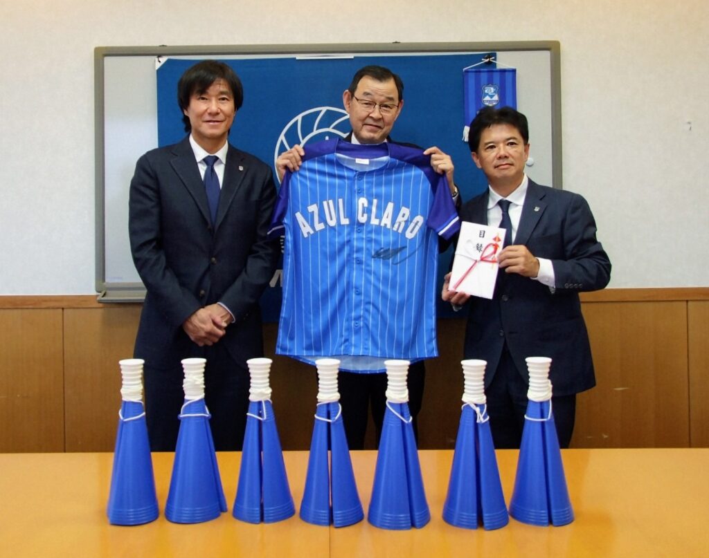 アスルクラロ沼津様に応援用メガホンを寄贈いたしました。